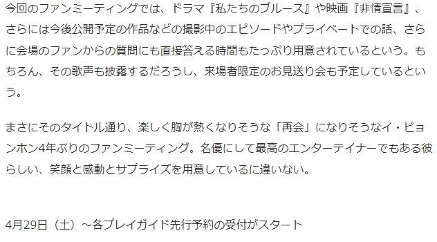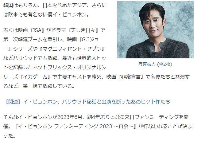 2023年04月30日 韓国 お久しぶりイ・ビョンホン日本ファンミ~ !(^^)! カテゴリ:韓流 お久しぶりの大御所 イ・ビョンホン氏ファンミーティング~~~往年のファンは待ちに待っていたファンミ~~~しかしすごい!なぁ!(^^)!記事スポーツソウル様からお借りしましたにほんブログ村に参加していますにほんブログ村にほんブログ村 「韓流」カテゴリの最新記事 コメント コメントフォーム 名前 コメント 記事の評価 リセット リセット 顔 星 情報を記憶 コメントを投稿する 韓国 YG大型新人女子K-POPグループ「BABYMONSTER」(^o^)韓国 百想芸術大賞はパク・ウンビン~~ !(^^)!