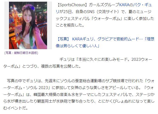 2023年06月27日 韓国 あの「WATERBOMB」が日本にやって来るが~ !(^^)! カテゴリ:韓流 WATERBOMB ソウルで開催されたようで皆さん 水着着用ですね~アトラクション級の ずぶぬれ感~なのでしょうかWATERBOMBが 日本にやってきますが~どうなんでしょうか???娘は BIGBANGテソンを観に参戦しますがずぶぬれになる覚悟(笑)です!(^^)!記事朝鮮日報 Kstyle様からお借りしましたにほんブログ村に参加していますにほんブログ村にほんブログ村 「韓流」カテゴリの最新記事 コメント コメントフォーム 名前 コメント 記事の評価 リセット リセット 顔 星 情報を記憶 コメントを投稿する 韓国 東方神起~東京ドーム30回って! !(^^)!韓国 クォン・サンウ&ソン・テヨン息子 (^o^)