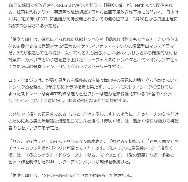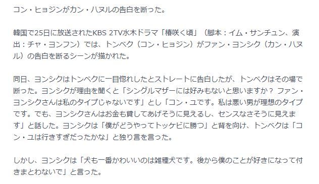 2019年09月27日 韓国 コン・ヒョジン&カン・ハヌル「椿咲く頃」は~ 期待以上 (*^^)v カテゴリ:韓流 にほんブログ村先日の渡韓の際~KBSドラマチャンネルで再放送を視聴~う~ん 期待以上の作品コン・ヒョジンの可愛らしさカン・ハヌルのコミカルな魅力満載~~私は4話視聴しましたが~もう 早く視たい病が~コン・ヒョジンはシングルママ役以前ドラマ「ありがとうございます」でも上手く演じているNetflixかぁ視たいわぁ(^○^)記事K-style様からお借りしましたにほんブログ村に参加していますhttp://にほんブログ村 「韓流」カテゴリの最新記事 コメント コメントフォーム 名前 コメント 記事の評価 リセット リセット 顔 星 情報を記憶 コメントを投稿する 韓国 ムン・グニョン4年ぶり新ドラマ~ (*^_^*)韓国 プデュの怖い先生ぺ・ユンジョン振付師結婚 (^○^)